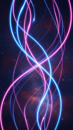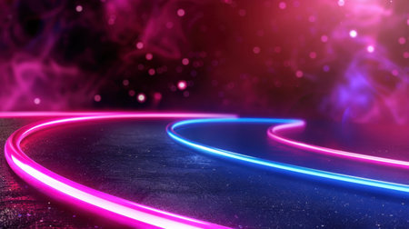 Abstract pink and blue neon light trails in space