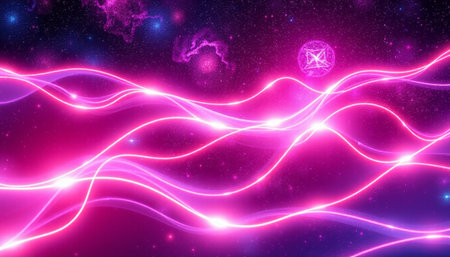 Abstract pink light trails against a dark violet background