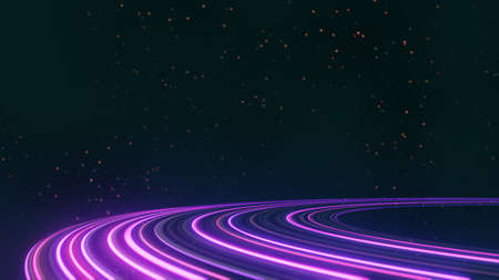 3d Neon light effect glowing trails. Colorful Light motion speed background. Motion blur long time effect. Technology 5g design concept. Laser beam sparkling on dark scene. Fast moving to futuristic.