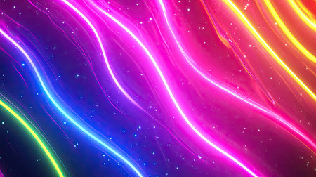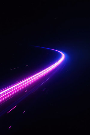 Colorful light trails in motion, vibrant neon streaks creating an energetic and dynamic abstract background