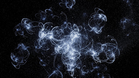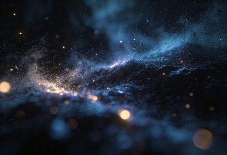 Luminous particles swirling in vibrant motion create an abstract cosmic texture