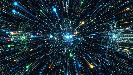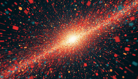 Digital dynamic bursts of light and data in space, showcasing futuristic technology and innovative visual effects.