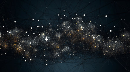 Network of golden connections on a dark abstract background
