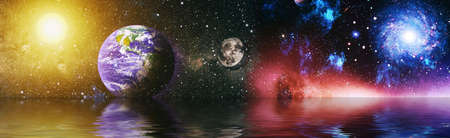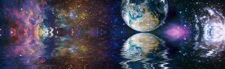 Our planet is earth in space, reflected in water. Beautiful unusual space .