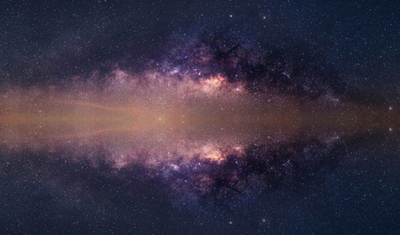 The reflection of the galaxy on the quiet lake, the starry color of the lake under the night sky