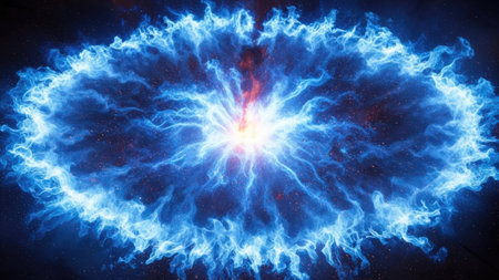 A vibrant explosion occurs in space, showing brilliant colors and cosmic energy during a stellar event.