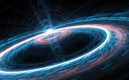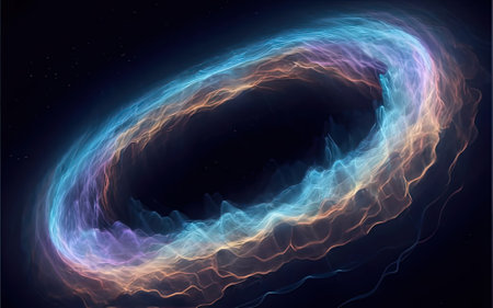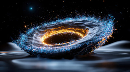 Glowing particle rings surround dark voids inspired by black hole phenomena