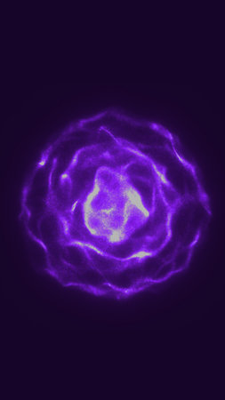 Glowing purple energy sphere radiating waves of light symbolizing cosmic power and digital vibration.