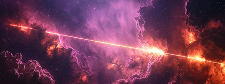 Majestic nebula clouds glowing in purple and orange with sparkling stars