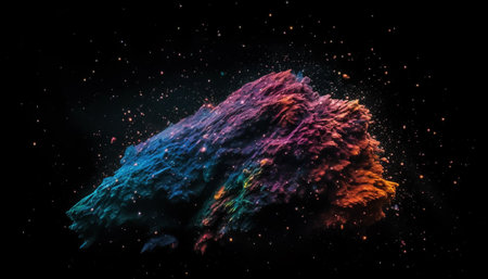 Exploding nebula creates vibrant colors in deep outer space generated by artificial intelligence
