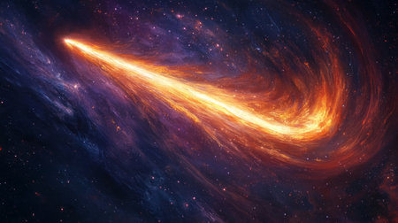 Burning comet tail streaking across the night sky, surrounded by bright stars and deep nebulae generative ai