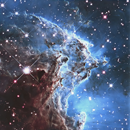 Space view of a shiny blue nebula.