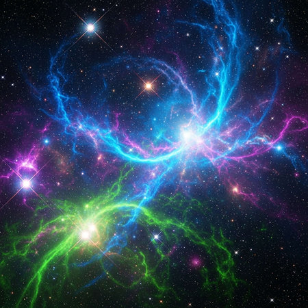 Colorful space nebula with bright stars and glowing gases