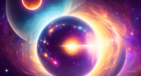 Planet Over Glowing Nebula on Colorful Space Background
