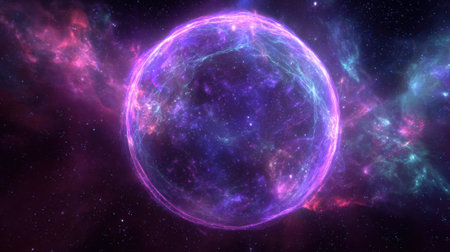 Cosmic Nebula Sphere Glowing in Deep Space. AI Generated.