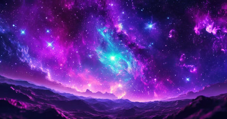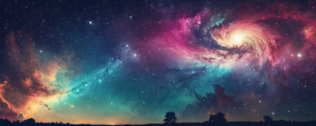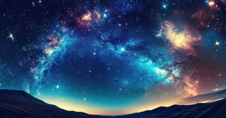 Beautiful cosmic scene featuring vibrant colors and countless stars in a vast night sky. Perfect for showcasing the wonders of the universe and exploration themes.