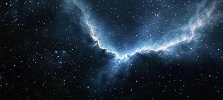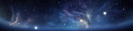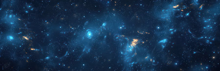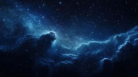 Ethereal starry nebula and cosmic dust in deep blue space. Background for technological processes, science, presentations, education, etc