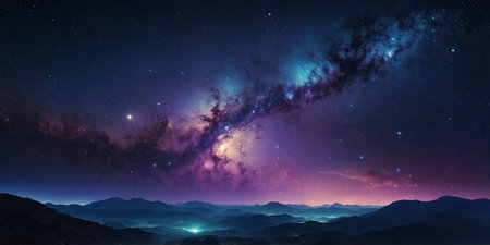 Vibrant colors and stars illuminate the milky way galaxy in the night sky