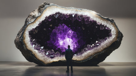 Stunning crystal formations display vibrant colors and reflections, creating a mesmerizing visual effect.