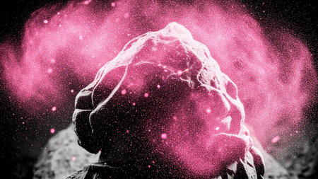 Closeup on meteor lumps and the sun that shines through in space. Suitable for any fantasy, astronomy or space realted purposes.