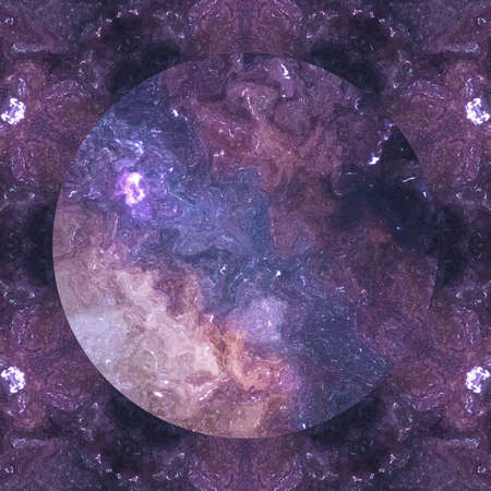 Fractal cosmic art. Graphic watercolor purple background. Galaxy cosmos design pattern for creative production. Glow artistic backdrop. Liquid digital oil painting. Good as texture or banner template.