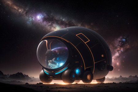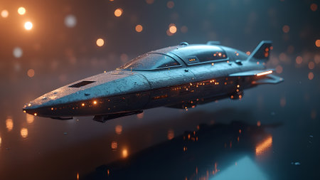 A conceptual representation of a futuristic spaceship, reflecting innovation. This image captures the blend of high technology and imaginative exploration.