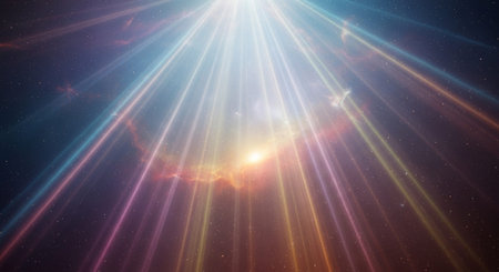 This image showcases a brilliant explosion of radiant light with streaking rays and particles, set against a dark backdrop, evoking a celestial or cosmic phenomenon with a striking visual impact. AI generated image
