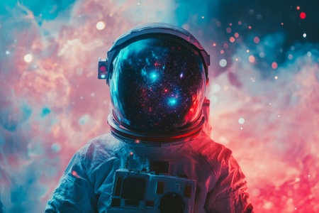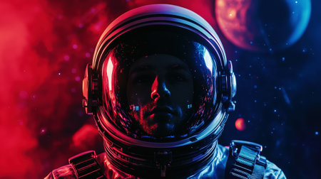 cinematic image of an astronaut. Colorful portrait of a man with spacesuit