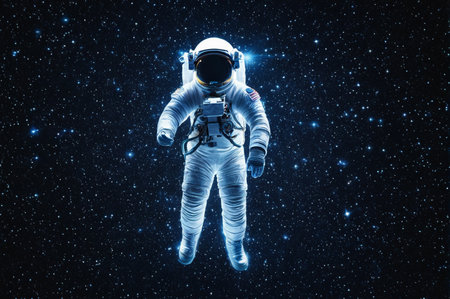Astronaut in a space suit in outer space.