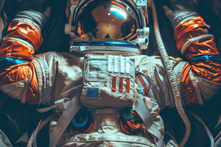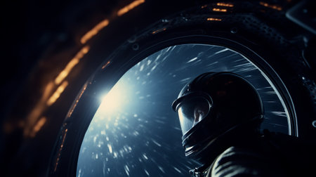 Astronaut in Space Station, Draw a life-like portrait of an astronaut wearing a suit, floating weightlessly inside a space capsule, AI Generated