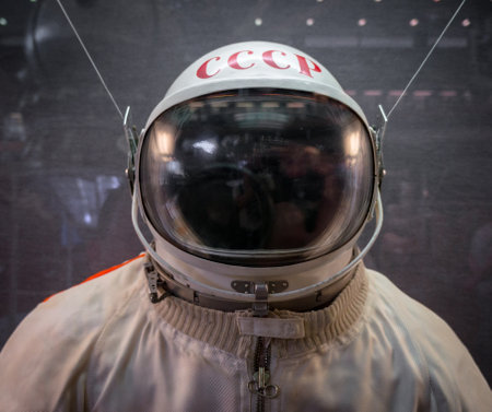 Saint Petersburg, Russia - May 13, 2017: Russian astronaut spacesuit in Saint Petersburg space museum