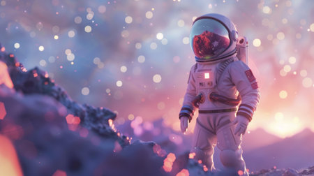 A lone astronaut in a futuristic space suit gazes into the vast cosmos, symbolizing exploration and the mysteries of the universe. This artwork captures the essence of adventure and discovery in outer space.