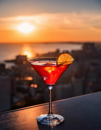 Sophisticated Cosmopolitan cocktail. Cosmo bar glass. Generate AI