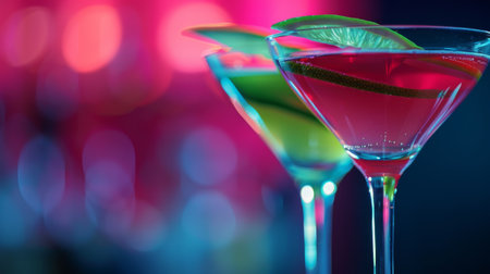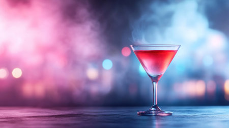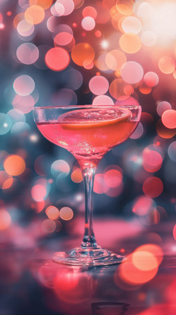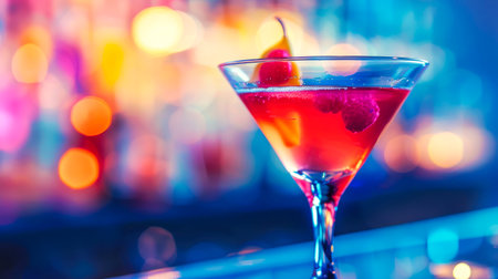 A stunning image of a cocktail in a martini glass, set against a colorful, blurred background, ideal for bar and beverage promotions.