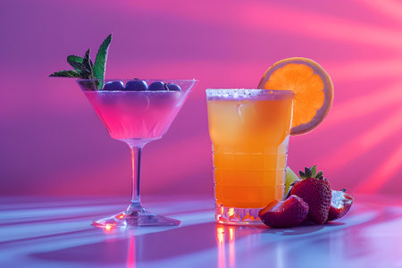 Close-up of Two Colorful and Refreshing Cocktails