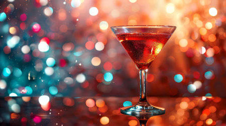Cocktail in martini glass on bokeh background.