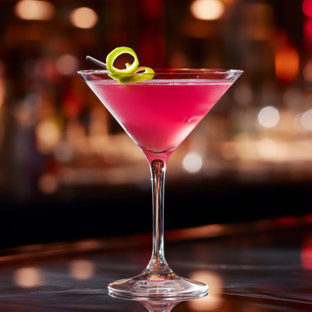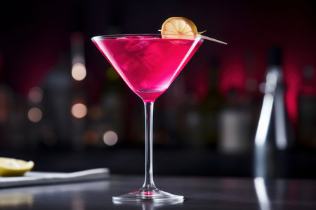 Classic cosmopolitan cocktail in a dark bar setting