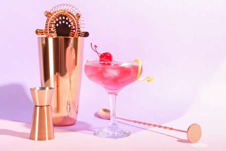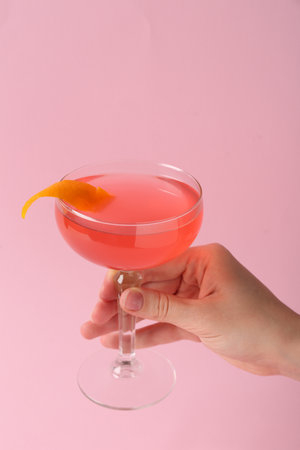 Cosmopolitan cocktail A pink cocktail with a pink background