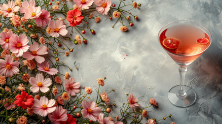 Delicate floral accents complement summer cocktails against a minimalist backdrop.
