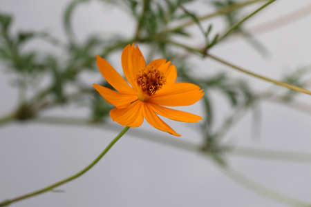 Yellow Cosmos flower blooming in the field. Sulfur cosmos isolated on white background (Cosmos sulphureous) with copy space.