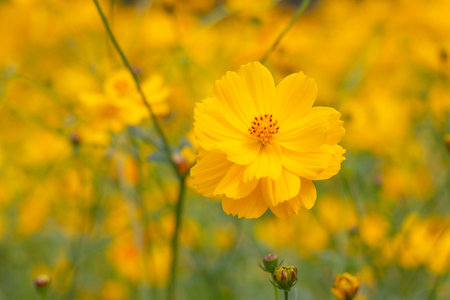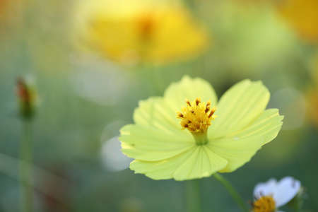 Yellow cosmos flower in the garden,soft focus and shallow DOF.