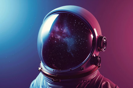 Close-up of an astronaut's helmet reflecting a myriad stars, capturing a sense of exploration