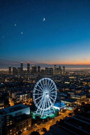Generative AI : Beautiful night sky cityscape view of Los Angeles
