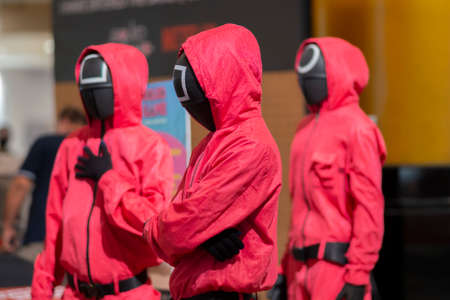 KUALA LUMPUR, MALAYSIA - 31 OCTOBER, 2021 : Soldier from Squid Game at the roadshow for the promotion of new Netflix show. Squid Game is a South Korean survival drama television series