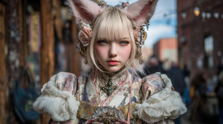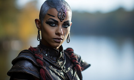 Fantasy cosplay portraits in complex costumes. Generative AI