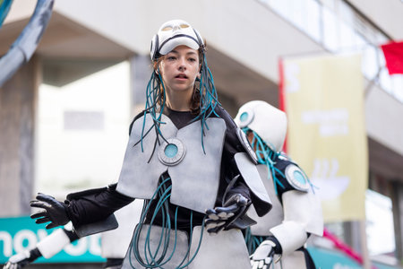 Sao Paulo, Brazil - February 17,2019: Unidentified group of people dressed in a costume in Cosplay Walk 2019 at Paulista Avenue. Cosplay is a traditional part of Japanese pop culture.