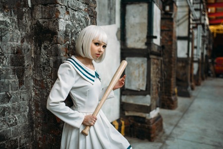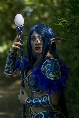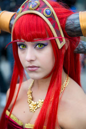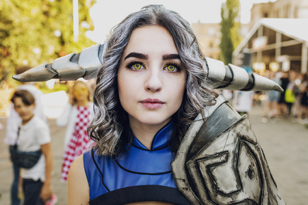 Moscow, Russia - November 20, 2016: Cosplayer posing at the Gamefilmexpo festival dedicated to video games, TV series and comics, anime, manga, cosplay.