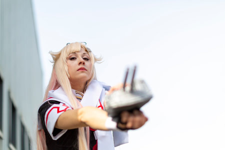 Rimini, Italy - 2016 07 21: Rimini Comics free cosplay event around beach and seaside Qoo Otaku War Ship Girls Battle. High quality photo