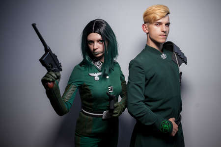 GENOA, ITALY - 25 APRIL 2015 - Unidentified cosplay posing dressed like anime characters