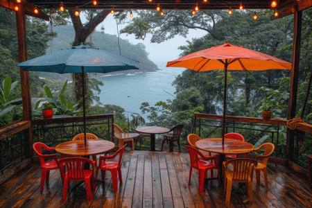 outdoor cafe Sunshade umbrellas style professional photography